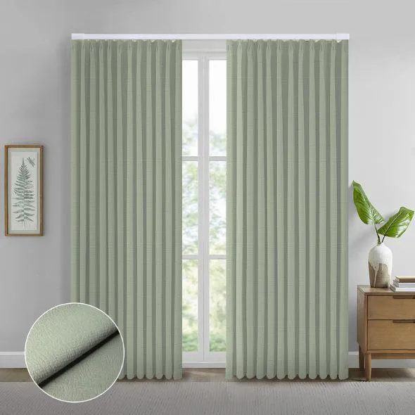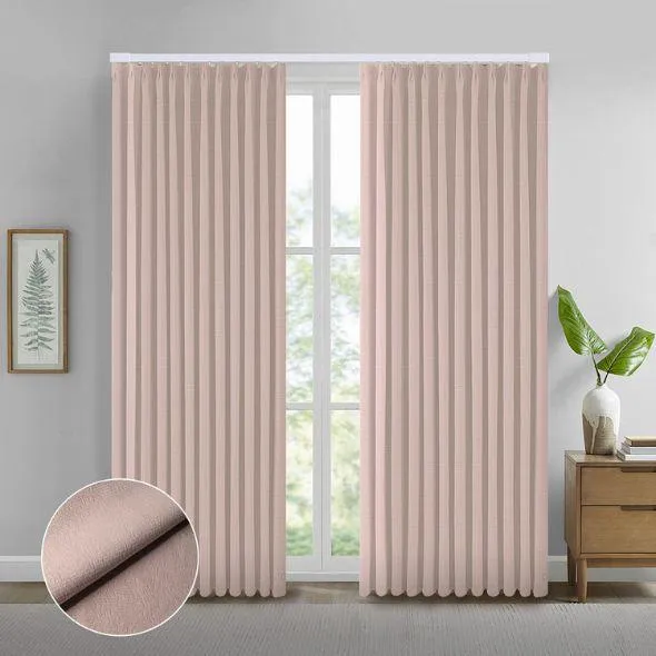 The Elysian fabric is made to last, with a strong weave and beautiful texture. It has tiny, uneven bumps that form a soft patchwork look, adding style and depth. The fabric comes in six rich colors, each with its own feel, and they stay bright even with lots of sunlight. With 93% blackout, the Elysian fabric blocks most light and helps keep your room cool and private. It also resists wrinkles, making it easy to care for. The Elysian Series brings together style and function to give your home a soft, elegant touch.