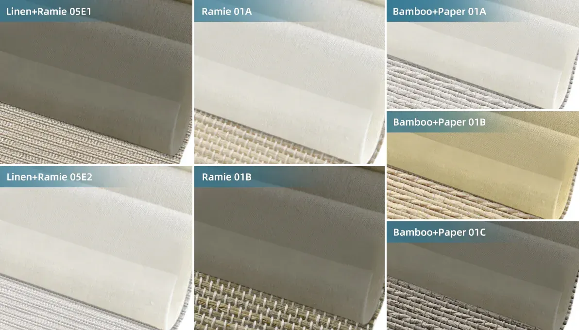 The Aphrodite Series uses natural fibers to create soft, elegant fabrics. Made from eco-friendly materials like ramie, bamboo, paper, and linen, each fabric has its own special texture and feel. The 100% ramie fabric feels light, fresh, and slightly shiny. The bamboo and paper mix is strong, light, and has a natural woven look. The linen and ramie blend is soft but also holds its shape well, giving your space a warm and cozy feeling. All of these fabrics are handwoven with care and bring a calm, timeless style to any room.